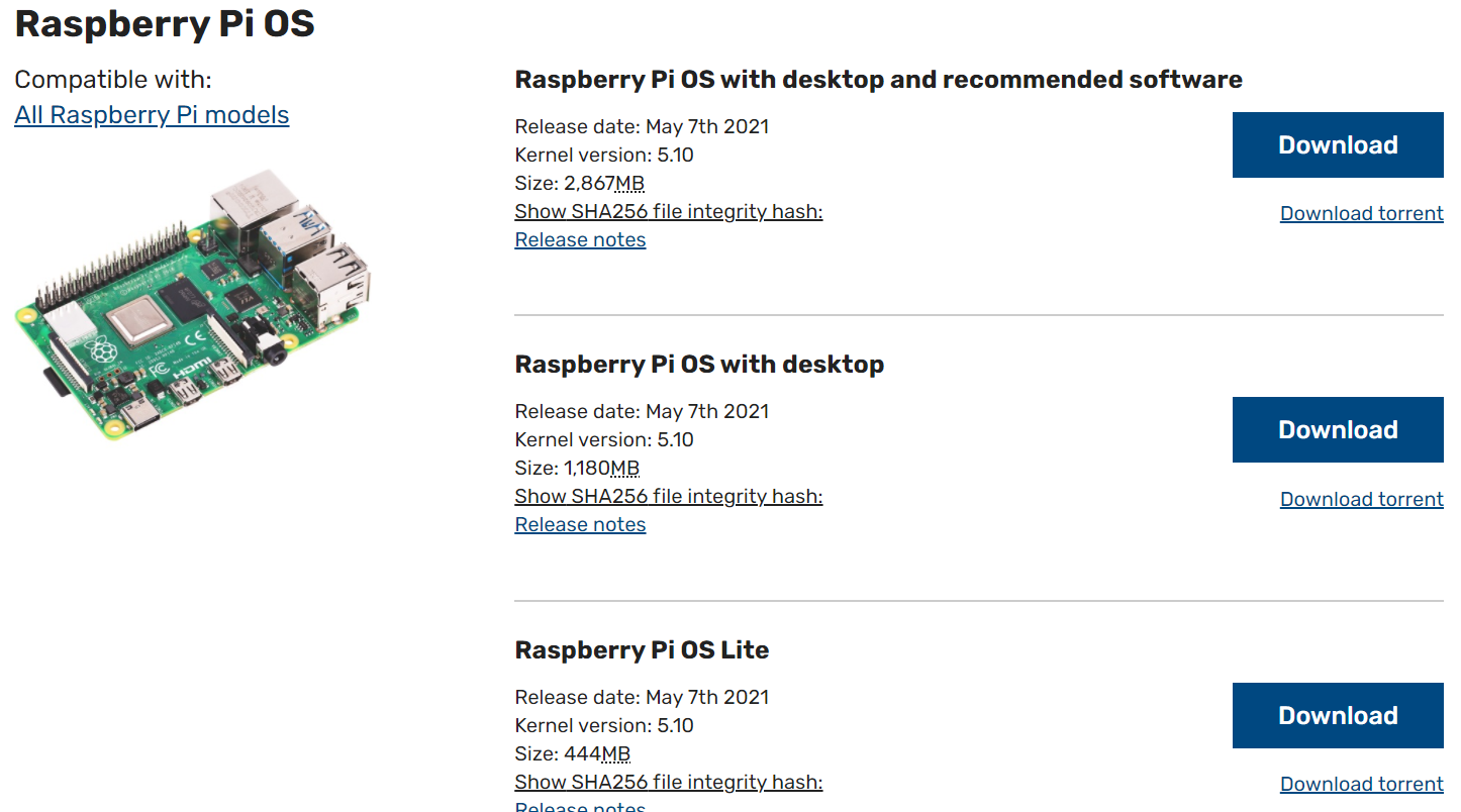 다음은 라즈베리파이 OS의 공식 다운로드 페이지이다.