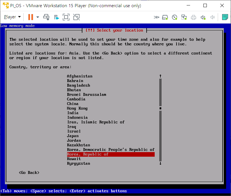 한국에 거주 중이라면 Korea, Republic of 방향키로 선택 후 Enter
