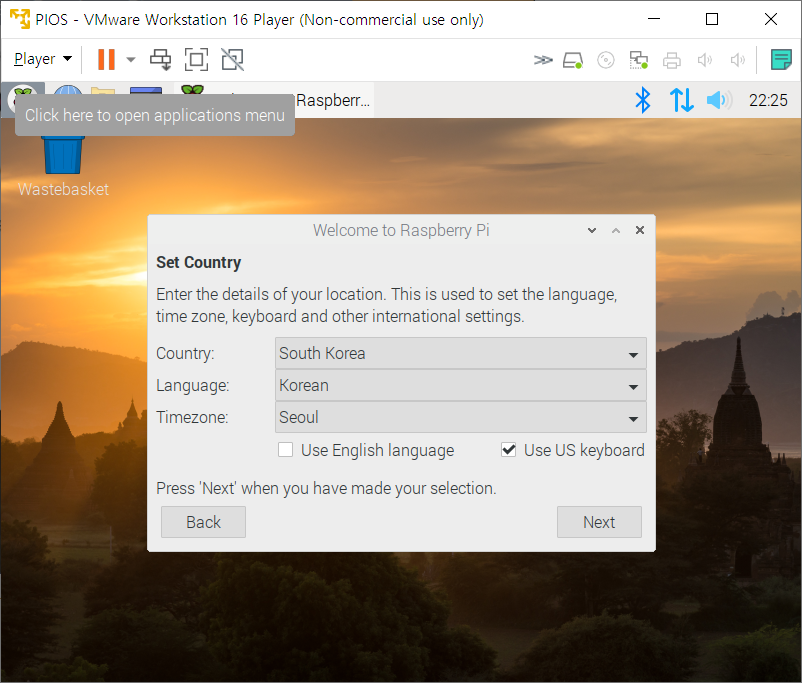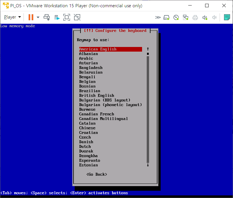 키보드 설정은 그냥 American English로 진행 후 부팅이 끝난 후에 재 설정 해줄 것이다.