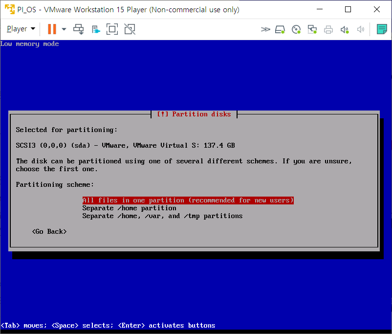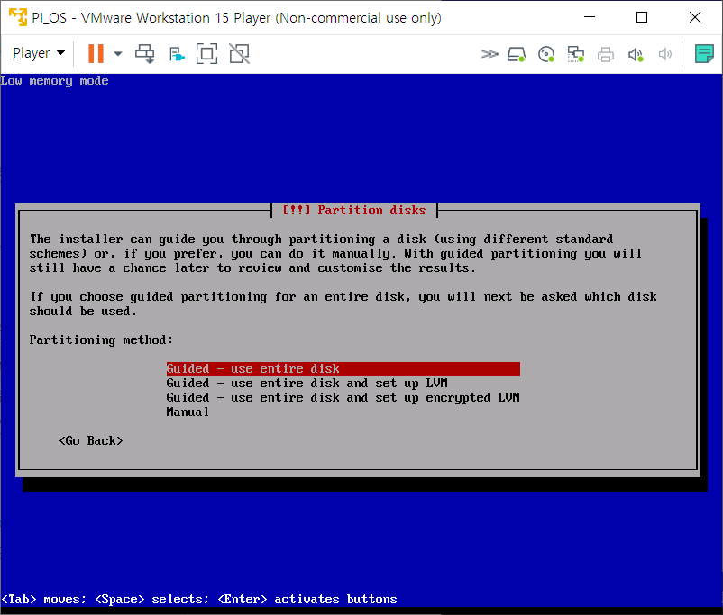 파티션 분할에 관련된 것이다. 가상머신이니 그냥 Enter