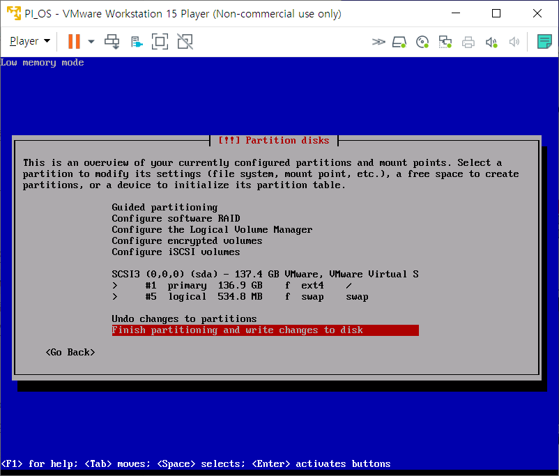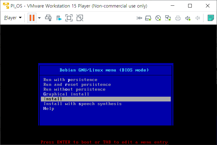 방향키로 조작하여 Install에 위차한 다음 엔터를 눌러 설치