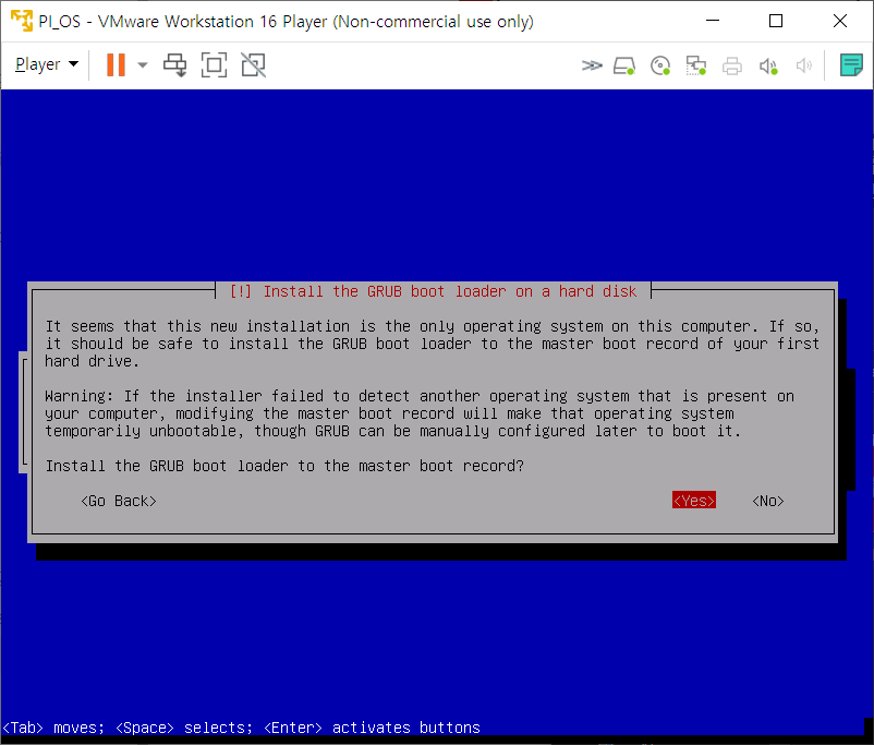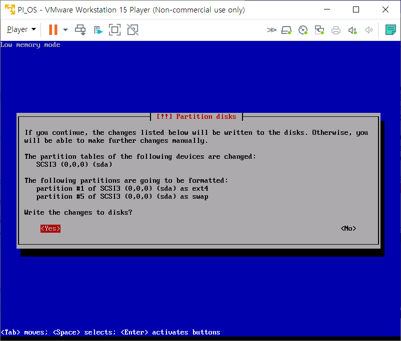 Yes를 방향키로 선택 후 Enter