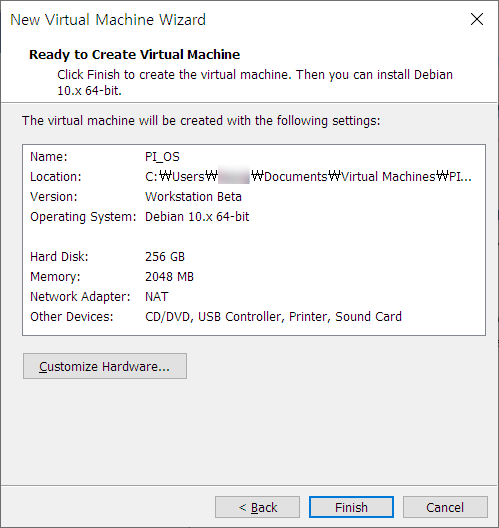 Customize Hardware를 눌러서 원하는대로 수정한다.