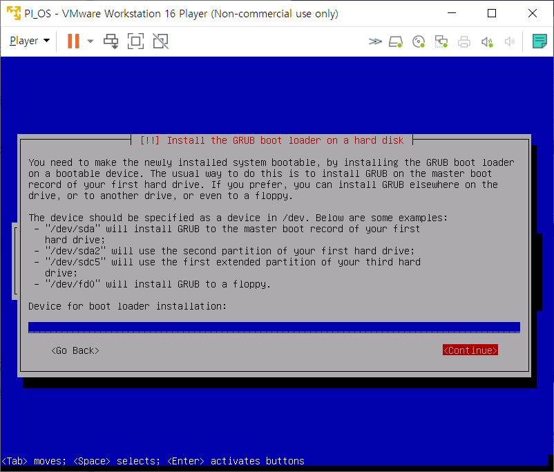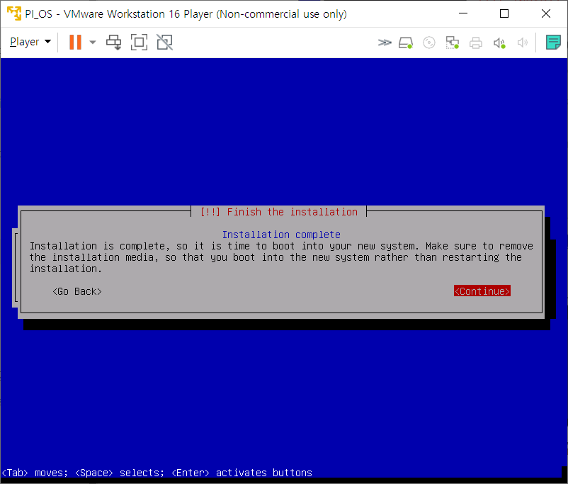 방향키를 조작하여 바로 Continue로 넘어가서 설치해주었다.