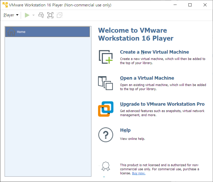 해당 환경에서는 VMware Workstation 16 Player를 이용해서 진행한다. 관련한 설치 방법은 다음 링크를 참고한다.