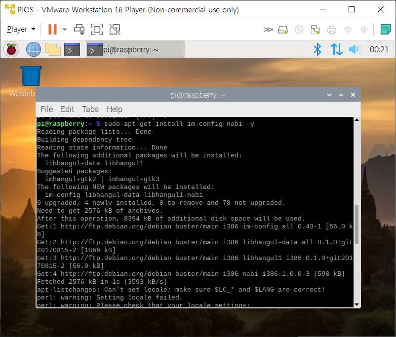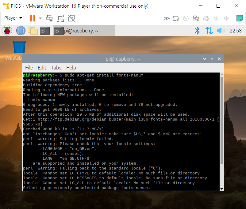 라즈비안에 한글 설정하기