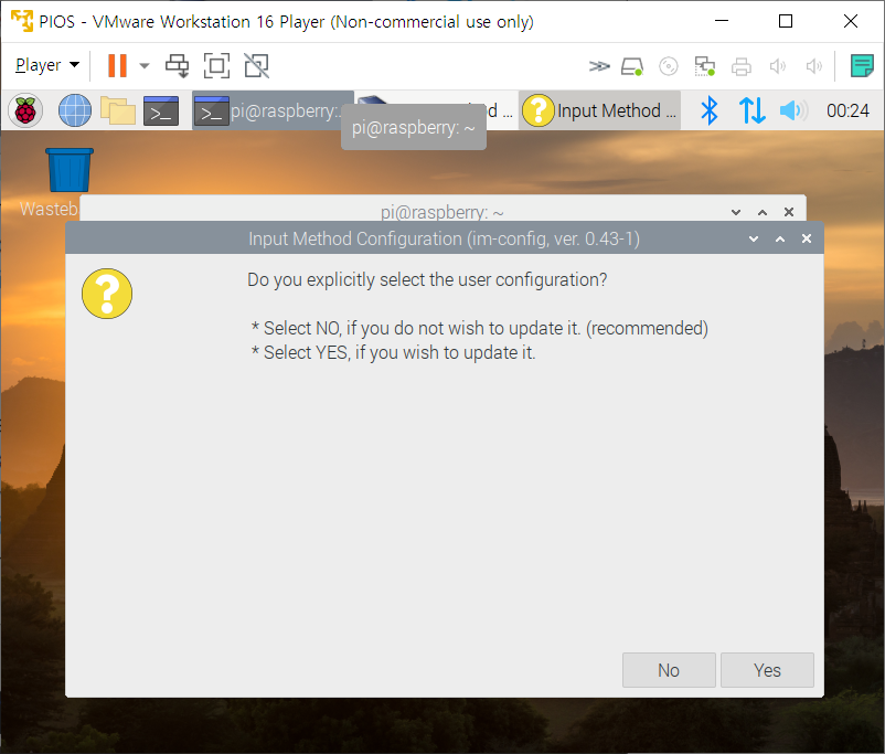 명령어를 입력하여 입력기 설정을 실행한다.