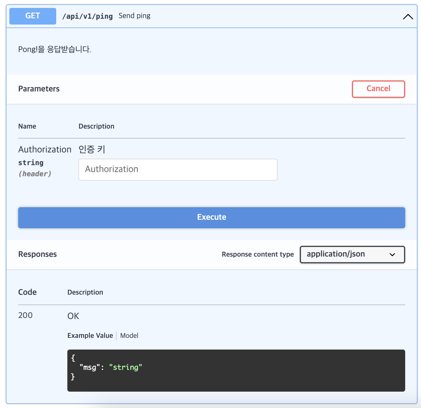 이후 웹 페이지에 들어가면 다음과 같이 깔끔하게 API 문서가 생성되어 있다.